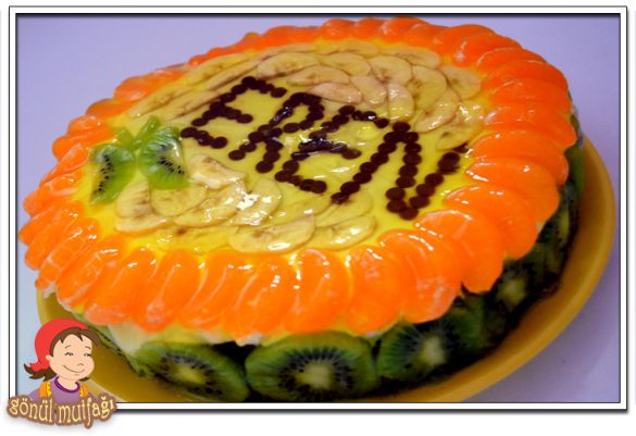 Sevgili arkadaşım Gönül süslemesi çok hoş olan bir pasta tarifi ile etkinliğe katılmış. Kendisine teşekkür ediyorum, ellerine sağlık arkadaşım. Meyveli Pasta: Malzemeler:…