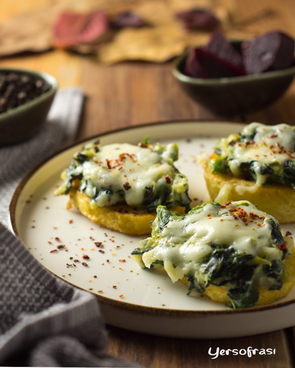 Patates Dilimleri Üstünde Ispanak Beğendi
